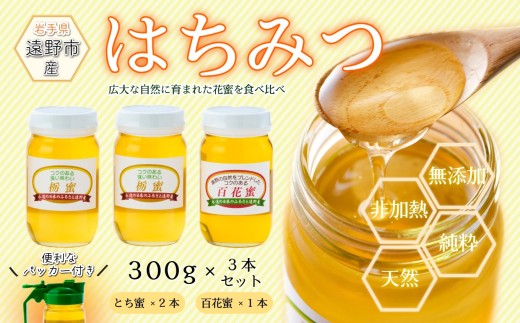 蜂蜜 300g 3本セット( 百花蜜 / トチ蜜 ) 国産 遠野産 非加熱 純粋 はちみ...