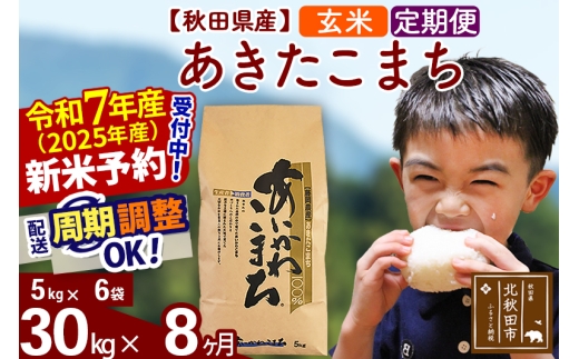 ※令和7年産 新米予約※《定期便8ヶ月》秋田県産 あきたこまち 30kg【玄米】(...