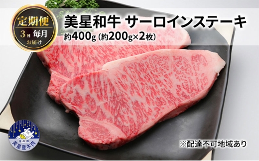 【定期便 3回 毎月届く】美星和牛 サーロインステーキ 各回約400g(約200g×2...