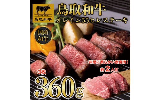 鳥取和牛オレイン55 ヒレステーキ 3枚(360g)1290|鳥取和牛 肉 お肉 にく...