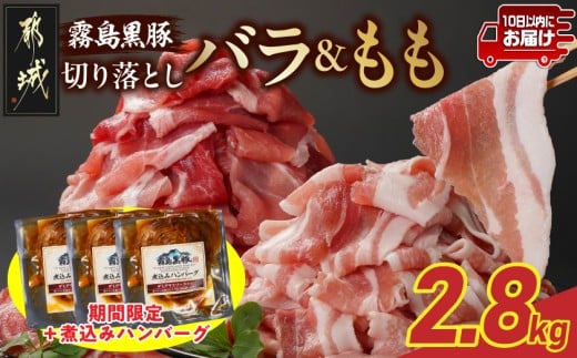 家計応援キャンペーン!霧島黒豚バラ&もも切り落とし2.8kgセット+ハンバーグ_A...