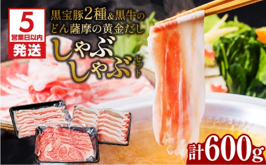 【5営業日以内に発送】黒宝豚2種&黒牛のどん薩摩の黄金だししゃぶしゃぶセッ...