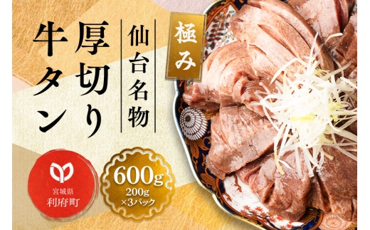 仙台名物 厚切り 牛タン 塩仕込み 600g(200g×3P) 牛たん スライス 塩味