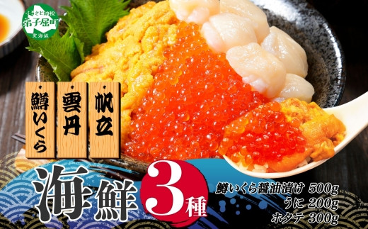3429. うに チリ産 冷凍 100g 鱒いくら醤油漬け 100g ホタテ 100g セット ウ...