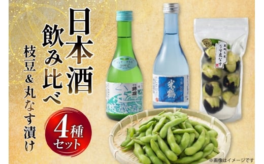 日本酒 飲み比べ セット 生貯蔵酒 300ml 2本 吟醸 生彩 300ml 2本 枝豆 300g ...