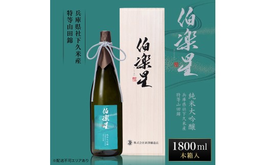 伯楽星 純米大吟醸 社下久米産山田錦 1800ml 新澤醸造店 加東市特A地区 木箱...