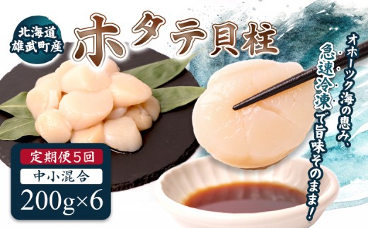 【定期便5回】 北海道雄武町産ほたて貝柱 中小混合 200g×6 (冷凍) 使い切り...