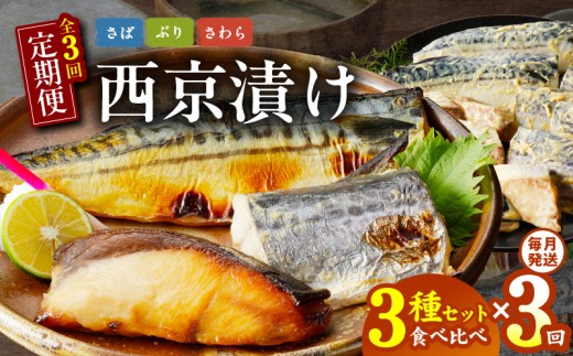 厳選素材 西京漬け 3種食べ比べ 定期便(さば/さわら/ぶり) 全3回【毎月発...