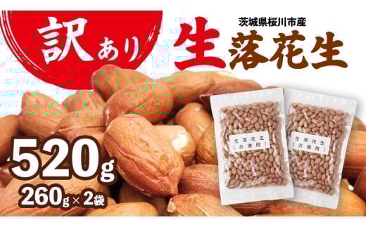 訳あり お徳用 茨城県産 生落花生 合計520g (260g×2袋) 簡易包装 ポスト投函...