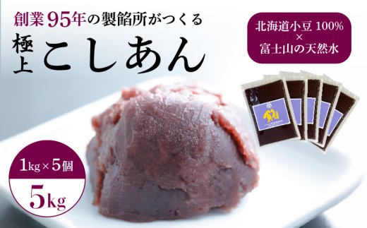 NEWこしあん あんこ 5kg 大容量 和菓子 5袋 北海道産 小豆 国産 国内製造 富士山...