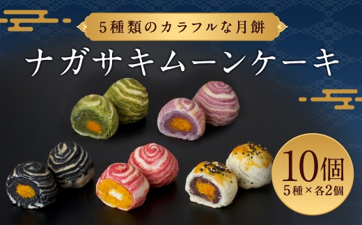 5種類のカラフルな月餅 “ナガサキムーンケーキ” 10個入 月餅 ケーキ スイー...