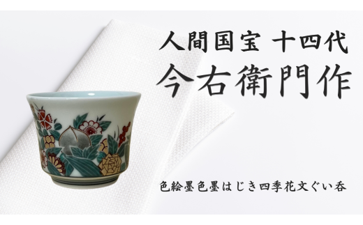 NEW【有田焼】人間国宝 14代今右衛門作 色絵墨色墨はじき四季花文ぐい呑【本人作...