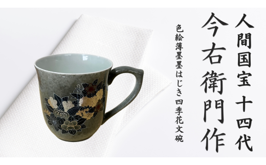 NEW【有田焼】人間国宝 14代今右衛門作 色絵薄墨墨はじき四季花文碗【本人作】