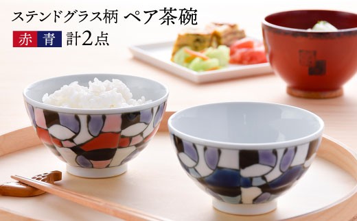 【波佐見焼】ステンドグラス柄 ペア 茶碗(青・赤) 食器 皿 【大新窯】 [DC2...