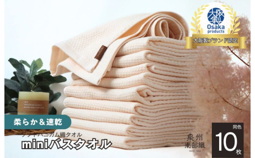 【ソフトハニカム】泉州南部織 ミニバスタオル 10枚(ベージュ)+ソフトハニ...