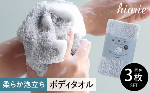 【スピード発送】ボディタオル あわもん 3枚セット ライトグレー【ヒオリエ ...