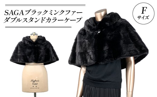NEWSAGAブラックミンクファー ダブルスタンドカラーケープ 毛皮 コート ケープ ...