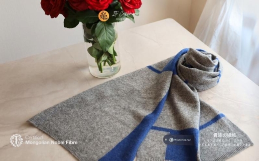 『Noble Fibre』100%カシミヤ・マフラー デニムインターシャ