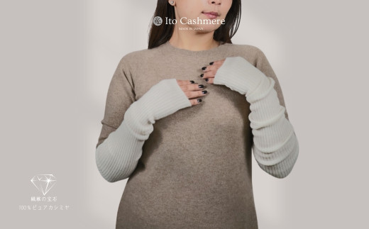 【Cadena Cashmere】アームウォーマー・総リブ(ホワイト)