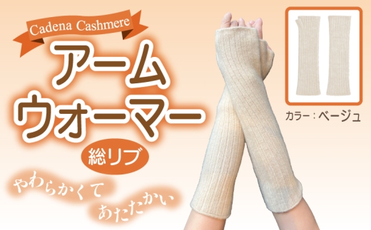 【Cadena Cashmere】アームウォーマー・総リブ(ベージュ)