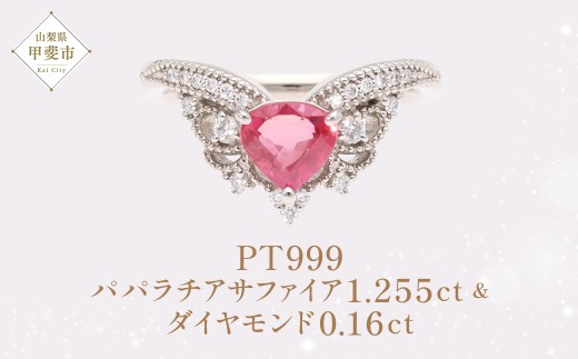 Pt999 プラチナ製 JQ パパラチアサファイア ダイヤモンド リング ダイヤモン...