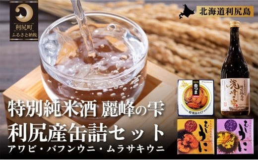 日本酒『麗峰の雫』特別純米酒720ml×1本・利尻島産アワビ醤油煮缶詰1個・利...
