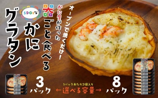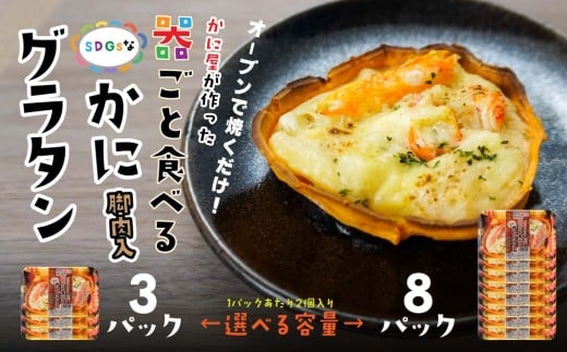 オーブンで焼くだけ!器ごと食べられる!脚肉入りのエコで美味しい「かにグラタン」!