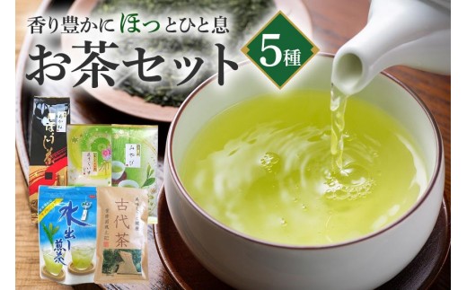 お茶セット 伝統の 日本茶 5種 ( ほうじ茶 煎茶 抹茶入り 玄米茶 水出し煎茶 ...