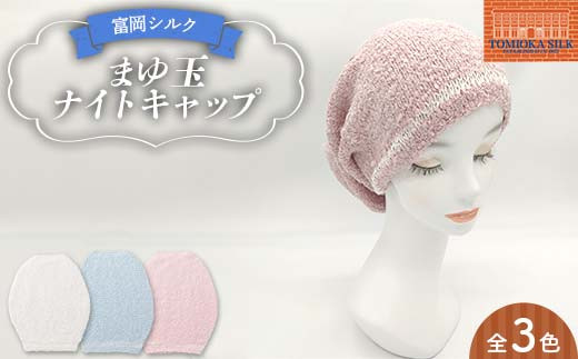 純国産 富岡シルク まゆ玉ナイトキャップ 《スノーホワイト/サックスブルー...