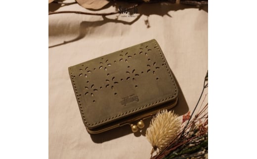 【4色展開】がま口ショートウォレット カットアウト 革小物 ハンドメイド...
