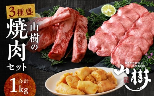 山樹の焼肉セット(黒毛和牛ゲタカルビ、牛タン、白ころホルモン)