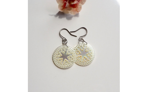 白蝶貝のレース彫刻「麻」イヤリング【1237884】
