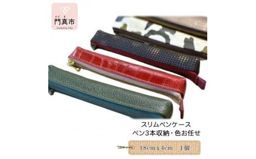 スリムペンケース(ペン3本収納・色お任せ)【革レザースリムペンケースコン...