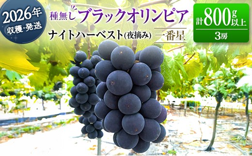 \夜摘み、珠玉の黒ぶどう/ 今回は、[ブラックオリンピア(一番星)]合計800g以上(3房)をご用意しました。 超極早生品種である『...