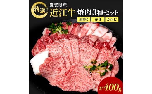 近江牛 特選 焼肉 3種盛り 約400g 牛肉 黒毛和牛 焼き肉 焼肉用 カルビ 赤身 ...