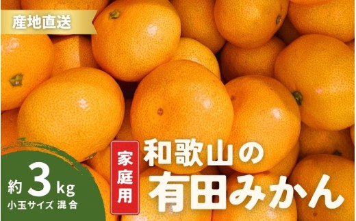 訳あり 家庭用 有田みかん 和歌山 小玉(2S,3Sサイズ混合) 3kg 【10月上旬~1...