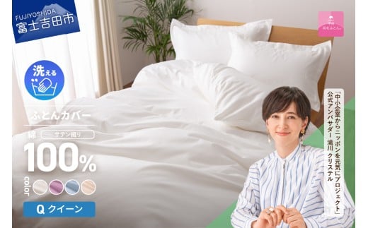 【甲州羽毛ふとん】綿サテン掛カバーQL (ホワイト/ピンク/ブルー/ベージュ)...