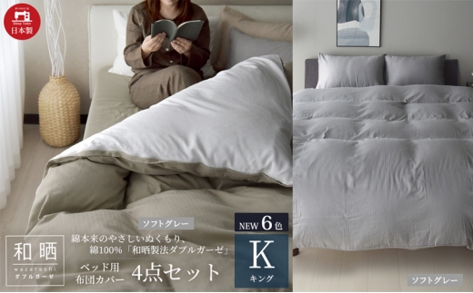 綿100% 和晒製法ダブルガーゼ ベッド用 布団カバー4点セット キングサイズ ...