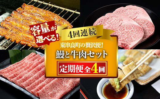 <容量が選べる!>贅沢定期便!鰻と牛肉の4回定期便(4回連続)(計1940g/計388...
