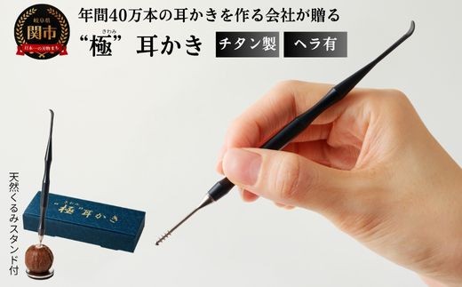 チタン製木目“極”耳かき(天然くるみスタンド付き)~年間40万本の耳かきを...